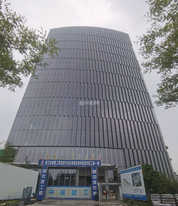 UAD浙大设计·作品,绍兴综合保税区商务配套中心酒店大楼已装好幕墙,其它三栋建筑施工已出正负零已,目前均已超过2层,正逐渐形成四个主楼
