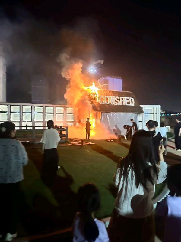 星隆城五楼的牛棚发生火灾,天干物燥,消防安全第一啊