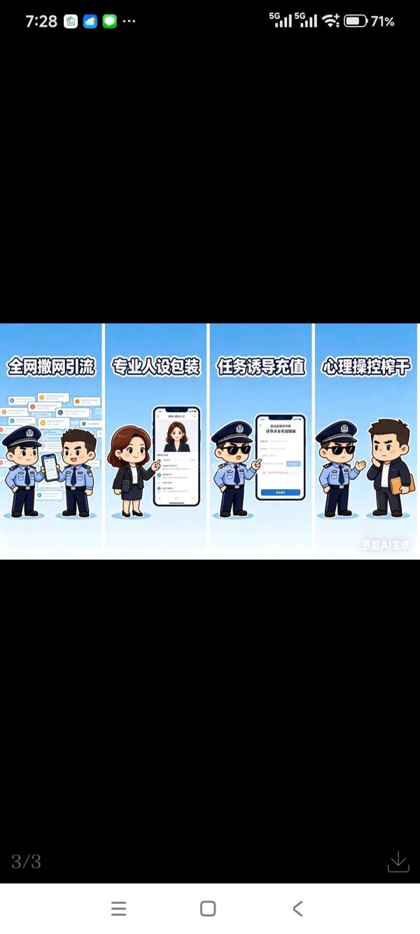 当受害者加大投入后,诈骗分子便会制造“连环问题”,突然抛出“任务失败”“数据异常”“操作失误”等各种借口,声称受害人账户已被冻结、之前的投入无法取出,并承诺只要转账“处理问题”“缴纳保证金”,就能立刻解冻账户并全额提现。最后,不断诱导受害者追加转账,直至受害者名下所有账户被冻结、再也拿不出一分钱,诈骗分子便会彻底失联,完成“心理操控榨干”的最终一步。
