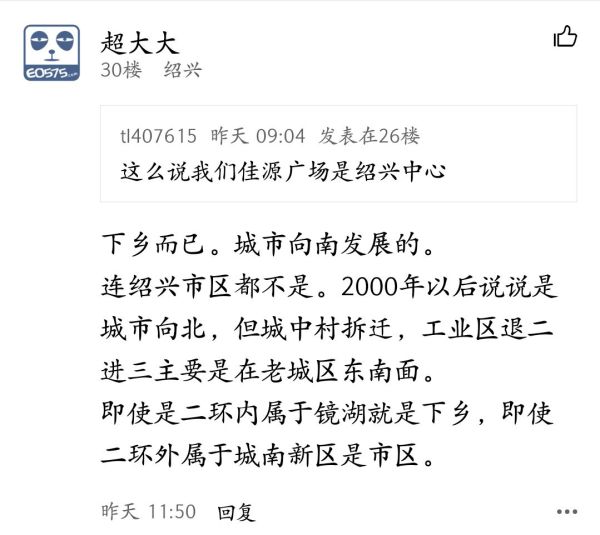 回 第10楼(tjg3457)的帖子 tjg3457:这句话其实是对的,绍兴市区永远是城里那一块,镜湖永远是乡下 (2026-04-22 14:14)