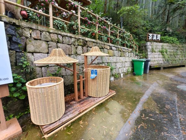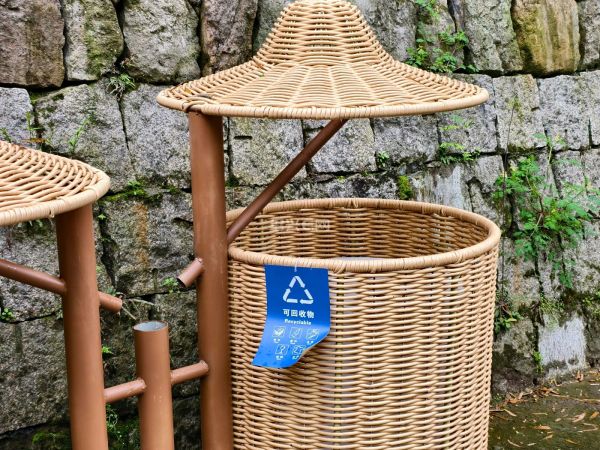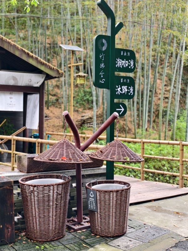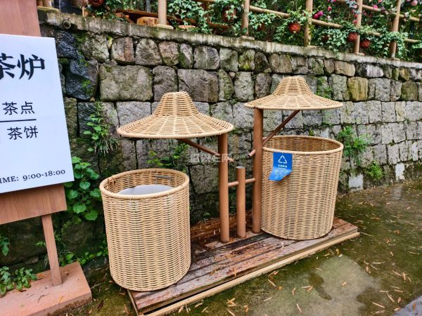平水合心村的垃圾桶很有特色,藤编垃圾桶加独特造型,还是非常和谐的。