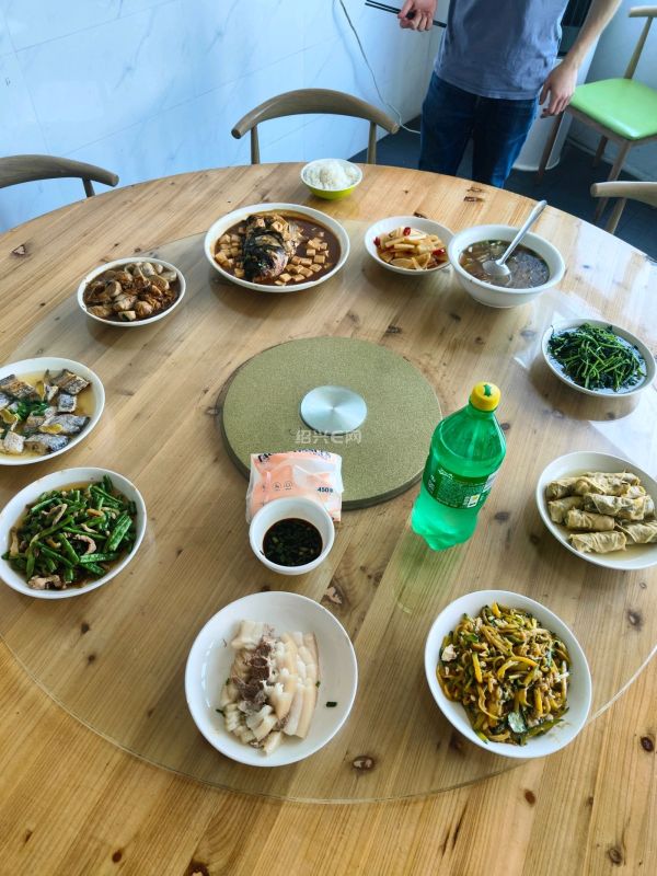 有的,十来个人。一个阿姨烧一顿中餐。