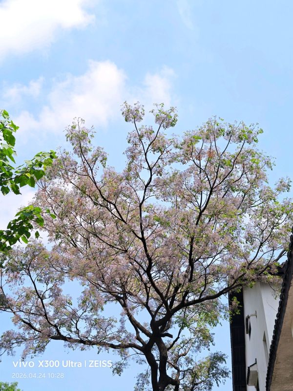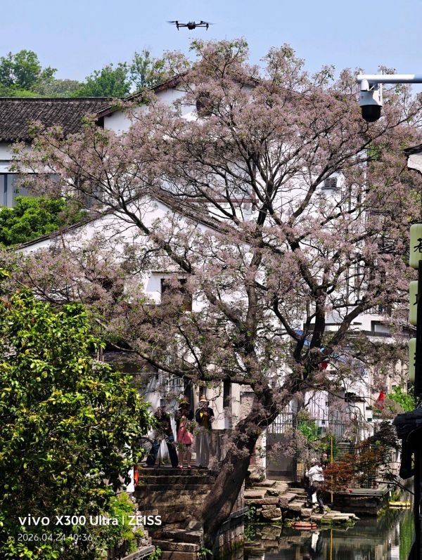这棵位于仓桥直街孔乙己酒家旁的苦楝树花已盛开,成了绍兴春天的“流量密码”,好多人前来拍照打卡,早上8点下午4点为最佳拍摄时间。
