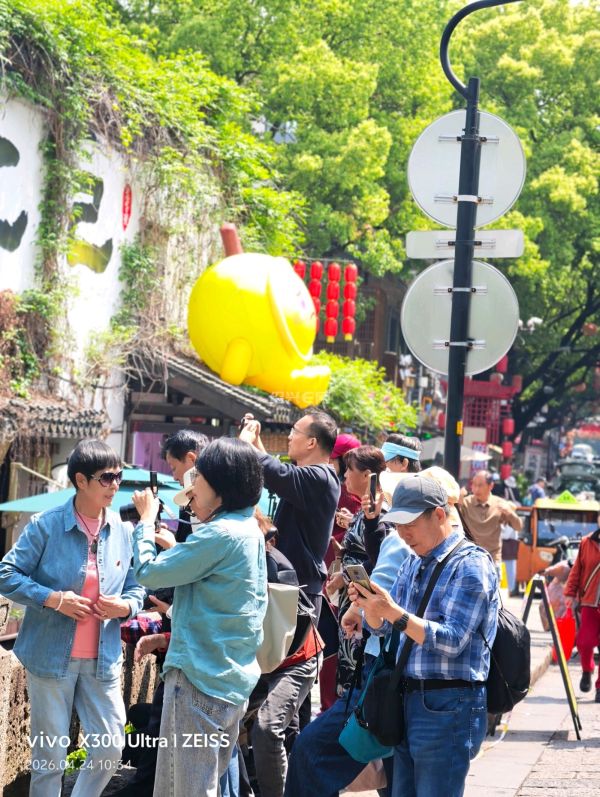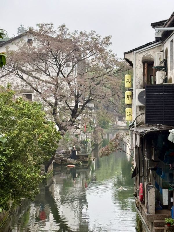 绍兴偶遇江一燕啦在安昌古镇好米一个人,瘦瘦高高的好像在拍摄杂志,