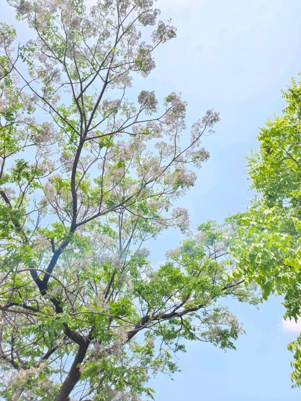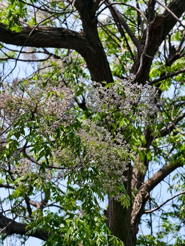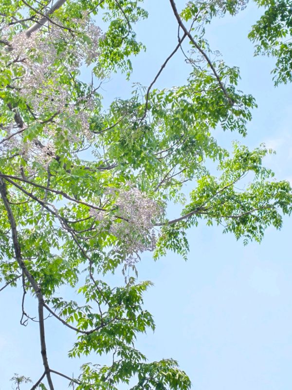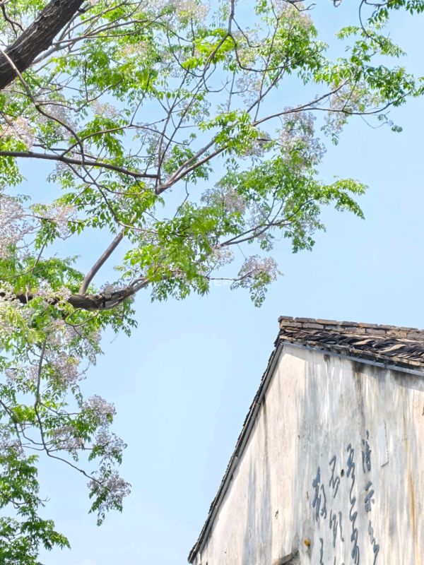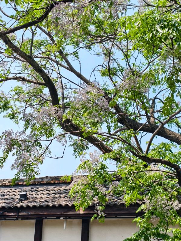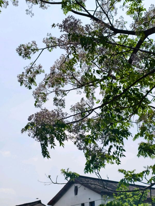这里的苦楝树花开了,桥上聚集了不少拍照片的人。