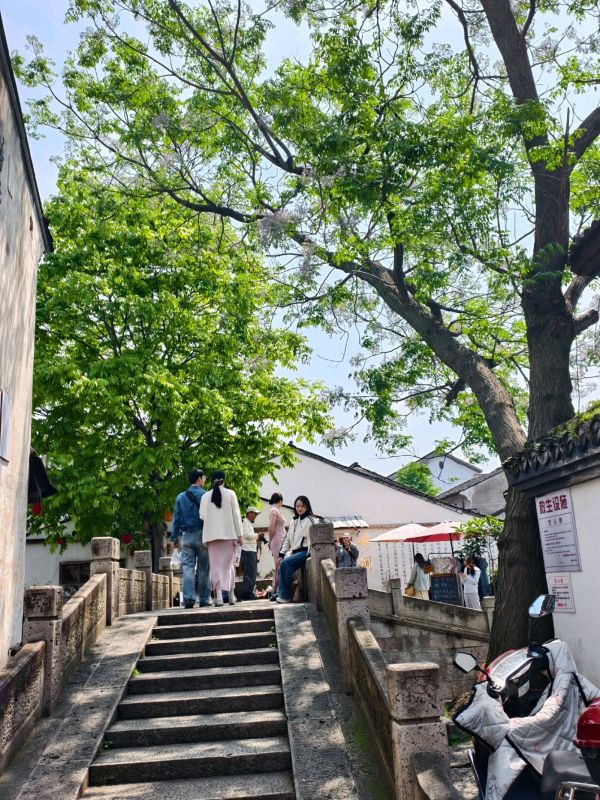 绍兴偶遇江一燕啦在安昌古镇好米一个人,瘦瘦高高的好像在拍摄杂志,