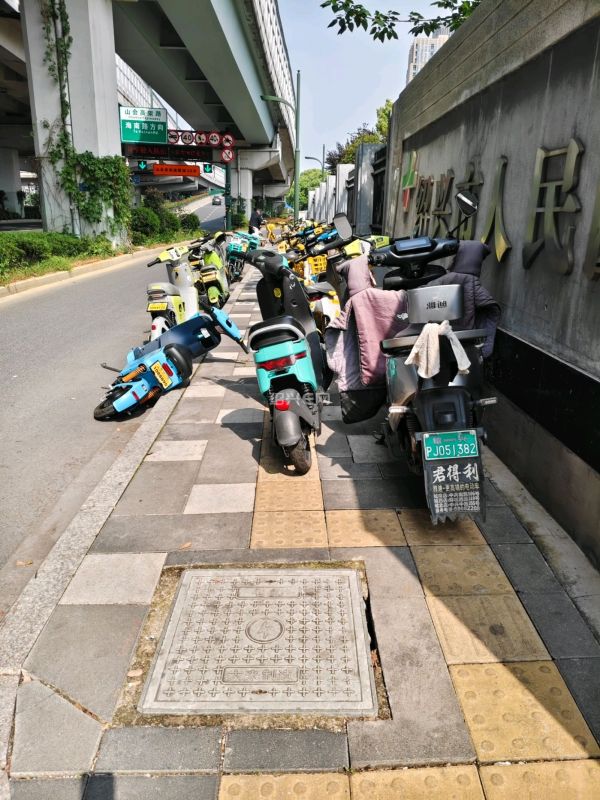 上上周拍的鲁迅故里地铁站B口,停车棚的电动车已经快三层了。