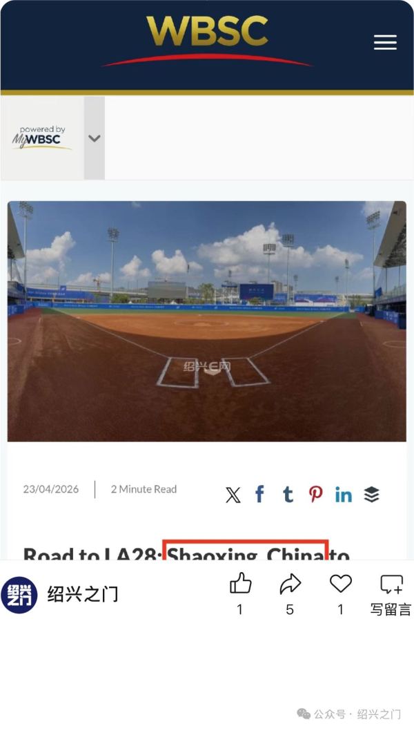 2028年洛杉矶奥运会垒球项目亚大区资格赛近日,世界棒球垒球联合会正式官宣:绍兴成功申办2028洛杉矶奥运会女子垒球项目亚洲/大洋洲奥运资格赛,赛事将在亚运场馆——绍兴棒(垒)球体育文化中心举行。No.1