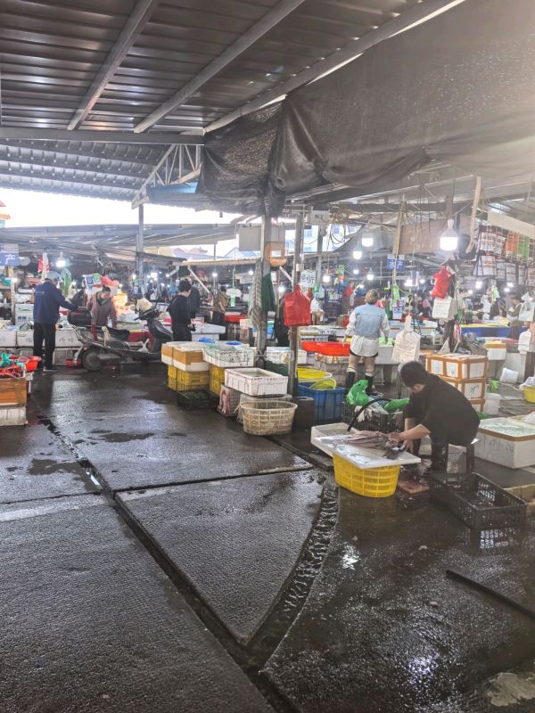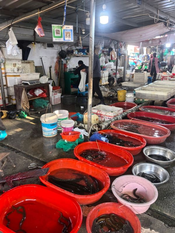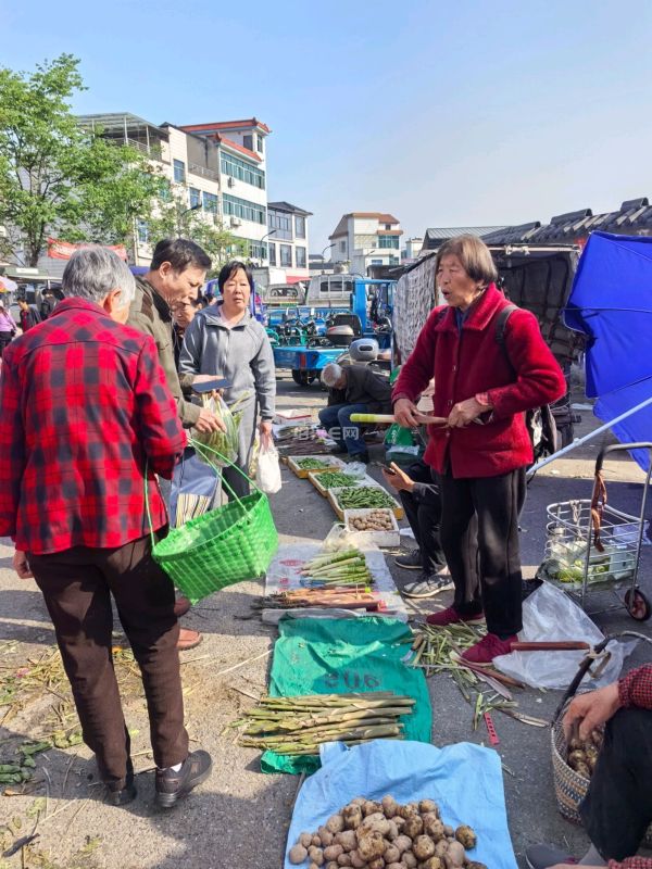 6点半左右到达,马路集市多为蔬菜,活食仅有泥鳅和黄鳝,前者大的50元一斤,后者75—100元一斤,看上去像是非养殖的。野山笋看来不多,带壳的1.5元一斤。