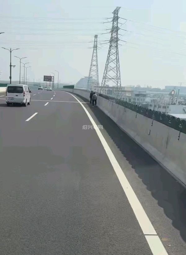 绍兴高架上步行的老年人,太危险了