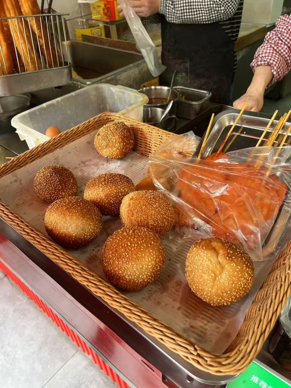售卖各式早餐,如麻团、豆腐脑、豆浆油条和面饽饽~