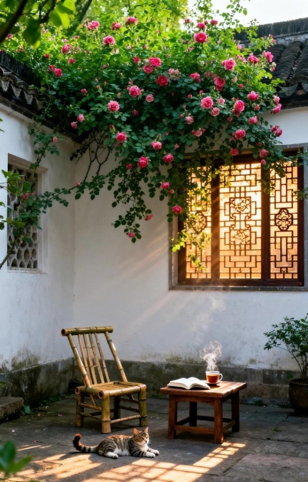 今逢座隅静好,任院外喧嚣,院内消停。一盏清茶,二三黄卷,谁不慕此温馨。只春衫尘满,