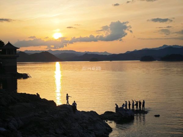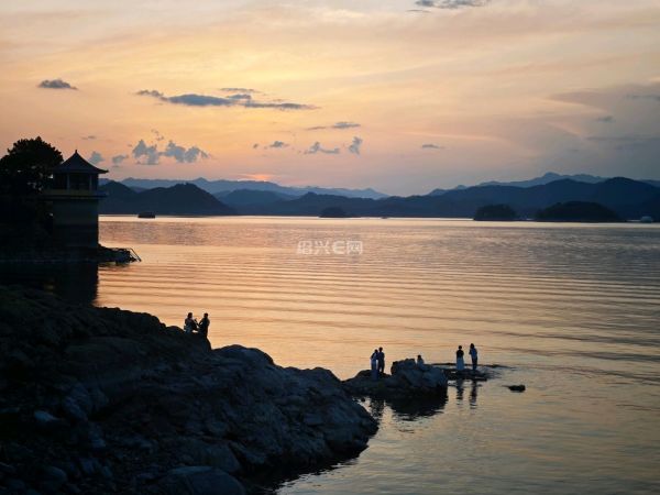 夕阳下,广宁桥两侧诗情画意,游客纷纷打卡留影