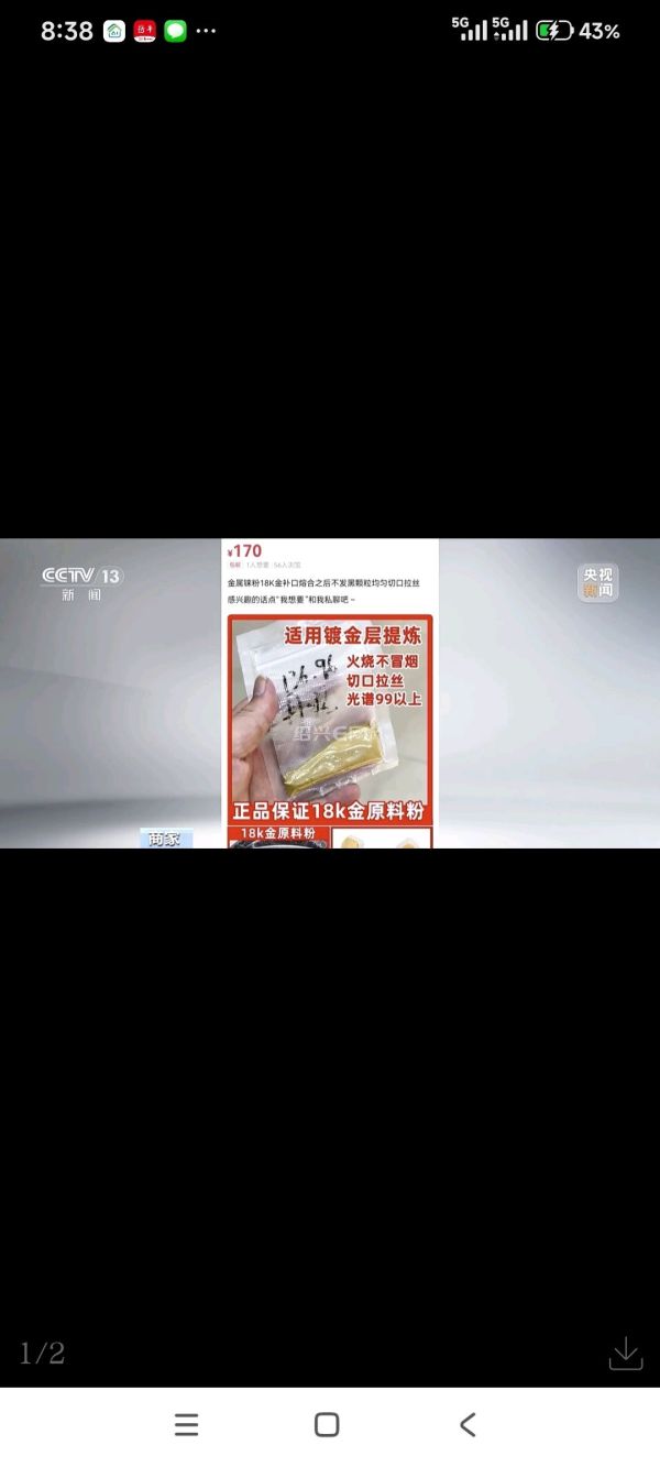记者在社交平台上发现,发布铼粉掺假视频的博主,不少都是售卖铼粉的商家,且不少商家宣称“纯金品质保证”。在二手交易平台,也有大量商家在售卖铼粉,甚至有人在商品标题中明确注明了“黄金放大”“过火过水过光谱”“与黄金75比25混合”等诱导信息。