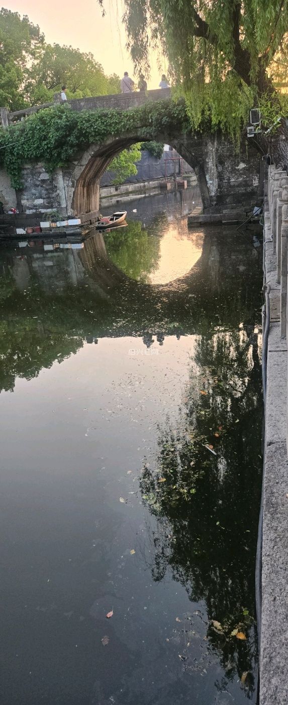 夕阳下,广宁桥两侧诗情画意,游客纷纷打卡留影