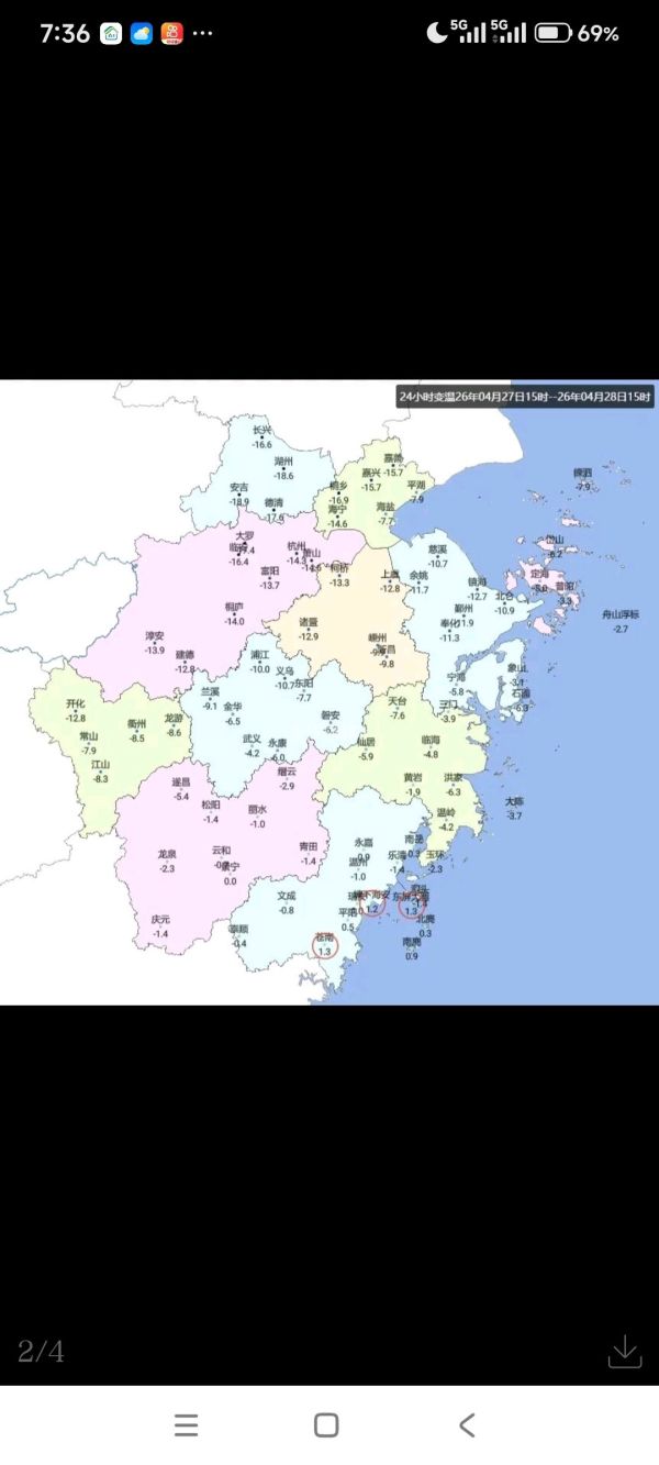 据浙江天气显示,因为冷空气和阴雨天气的影响,白天气温南北差异比较明显,尤其是浙中北部地区出现“气温倒挂”,不升反降,恍如一夜换季。
