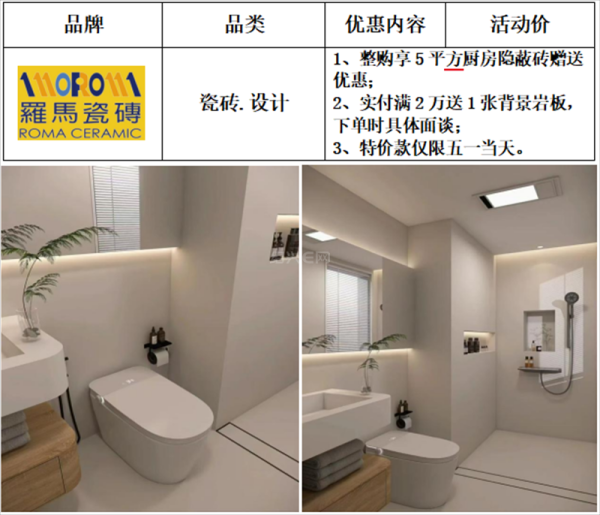 据悉,五一大聚惠活动期间(2026年5月1日-2026年5月5日),建材城瓷砖、卫浴、橱柜、厨电、太阳能、电器、灯具、门业、地板、墙纸墙布、家具、涂料、吊顶、古建等商品优惠力度大、促销品种全,更有知名品牌推出一系列优惠超值、尊享套餐活动供顾客选购。