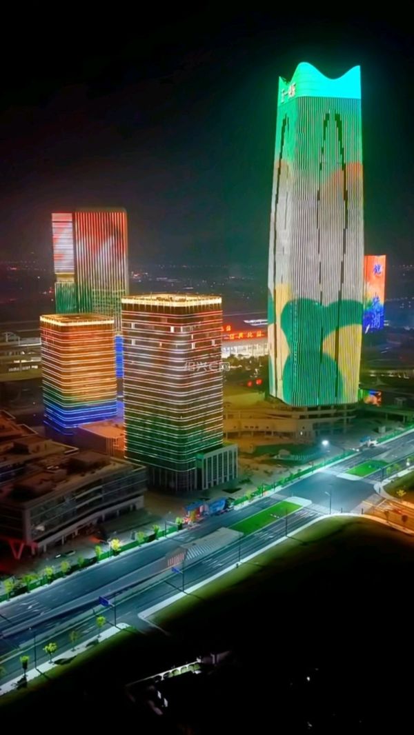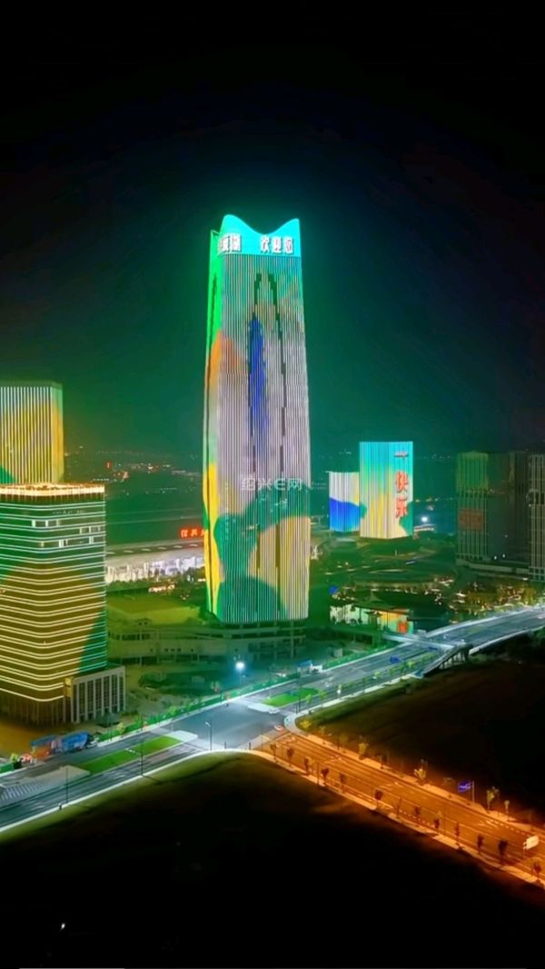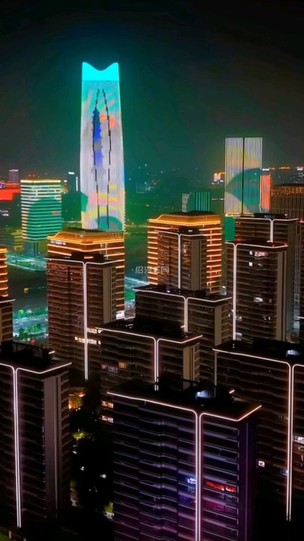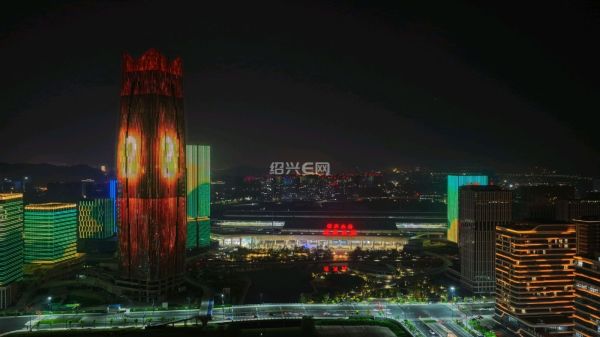 航拍北站亮化工程,绍兴的门面确实漂亮了不少。遗憾的是伟业那几幢没亮,不然会更漂亮。