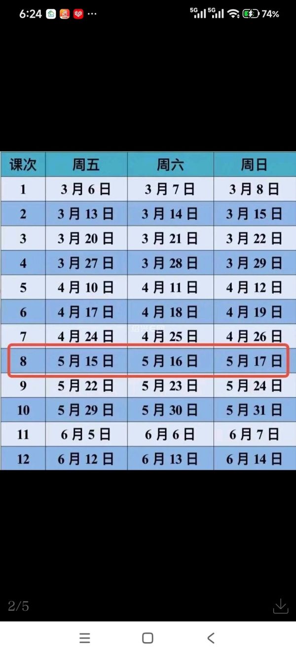 下一次(第八次)上课时间为:5月15日、5月16日、5月17日。(详见上图蓝表)