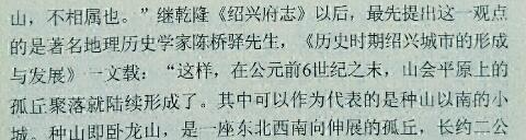 见中华书局《吴越文化论丛》284页第14行。原文为《历史时期绍兴城市的形成与发展》,我电脑里所保存的勾践小城考反复修改,最近事情多,有时候为了回个贴把加班时间也耽误了,网上发帖仓促,此段文字除标题多个的字。引文中“种山即今卧龙山”还少打了一个今字。罪过!