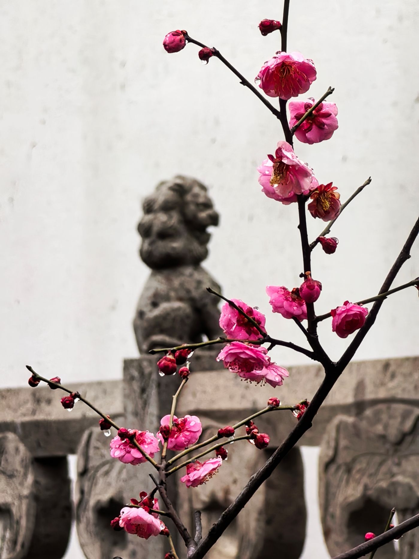冬雨沾梅枝,粉艳带清寒