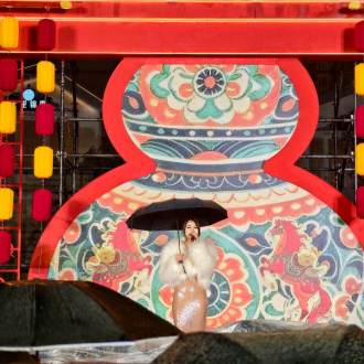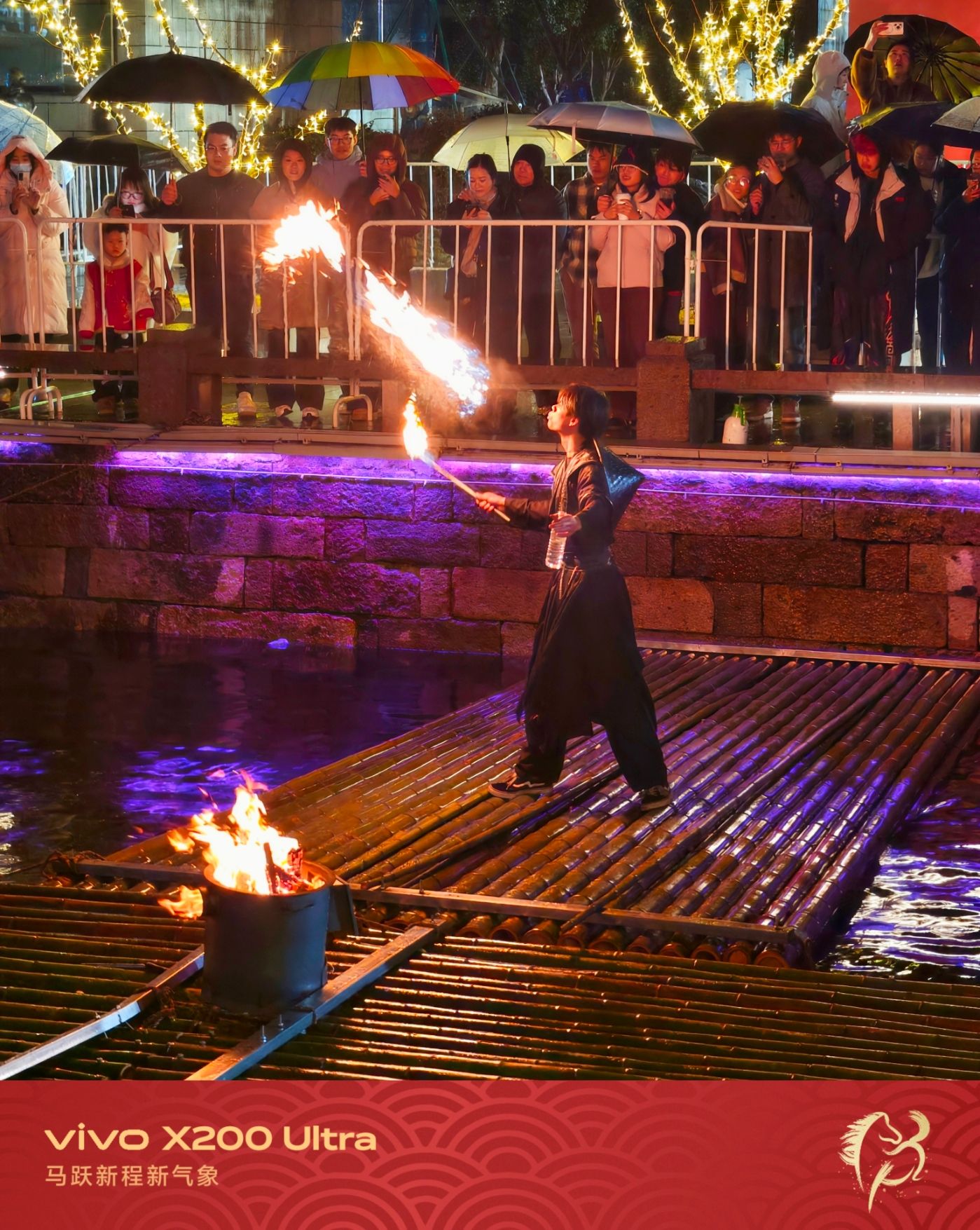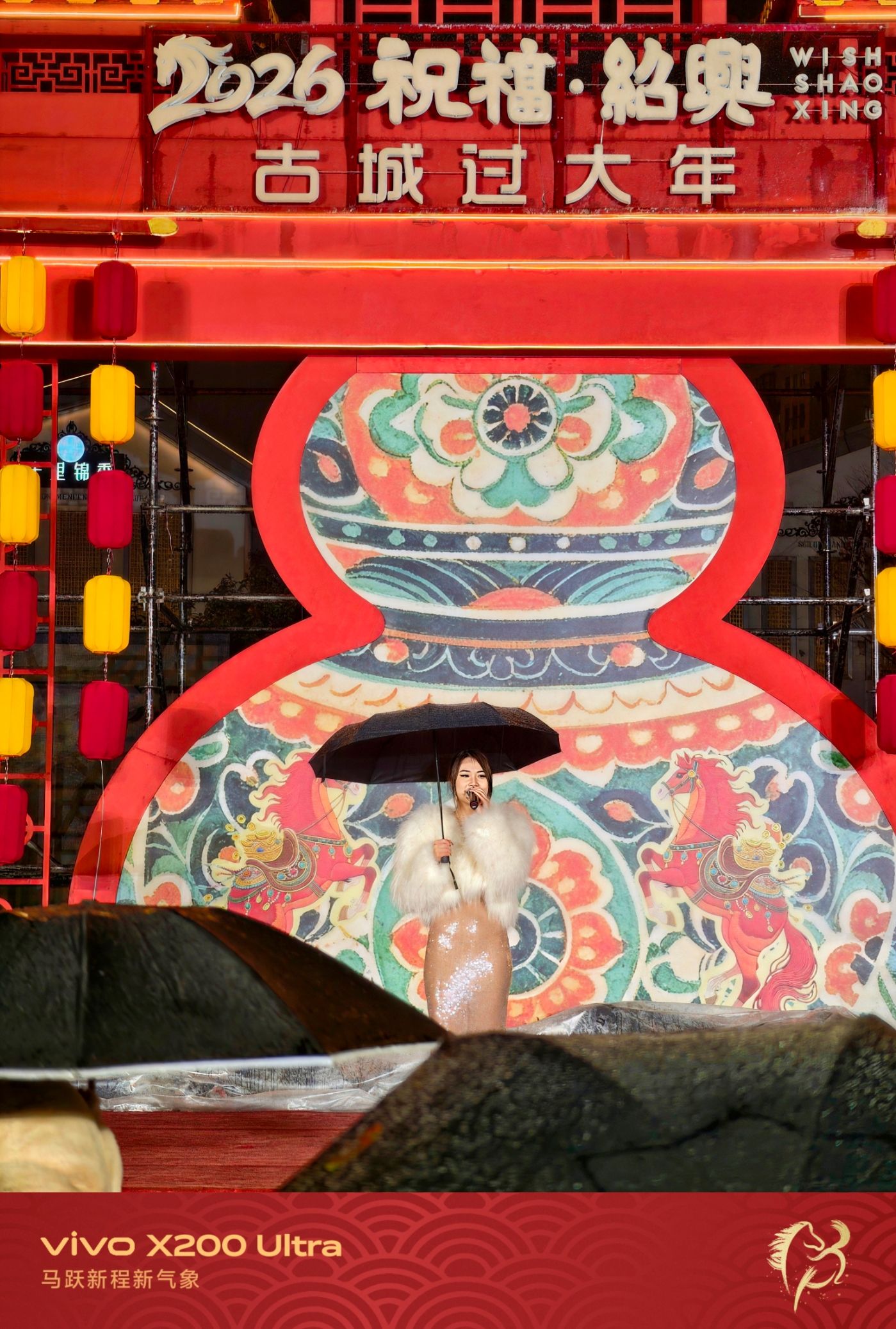 除夕夜、冷雨天、迎恩门、拍表演,祝网友新年好
