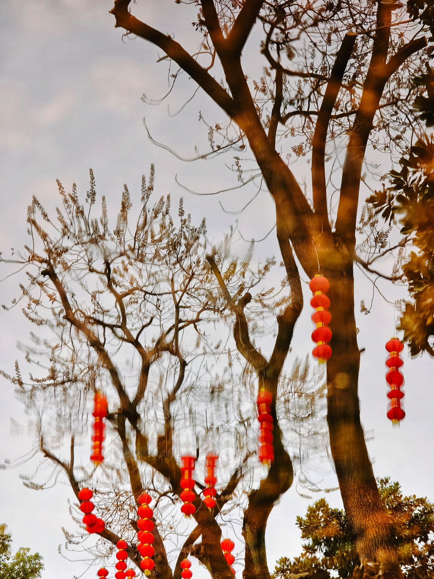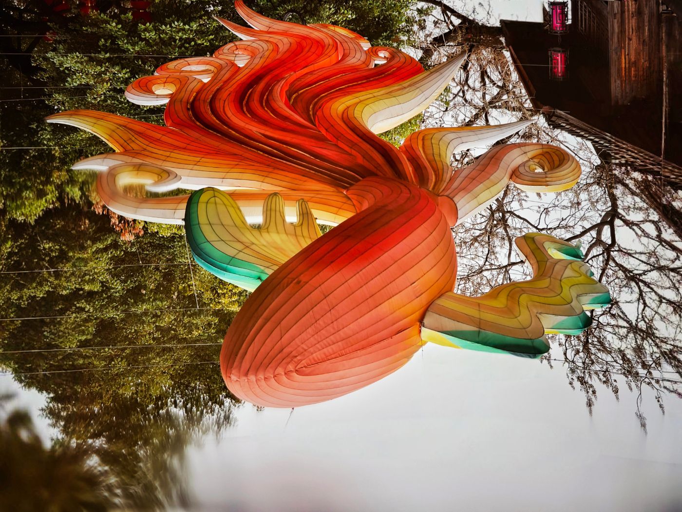 低头见惊喜,图七是小水潭里锦鲤花灯的倒影,看出来了吗