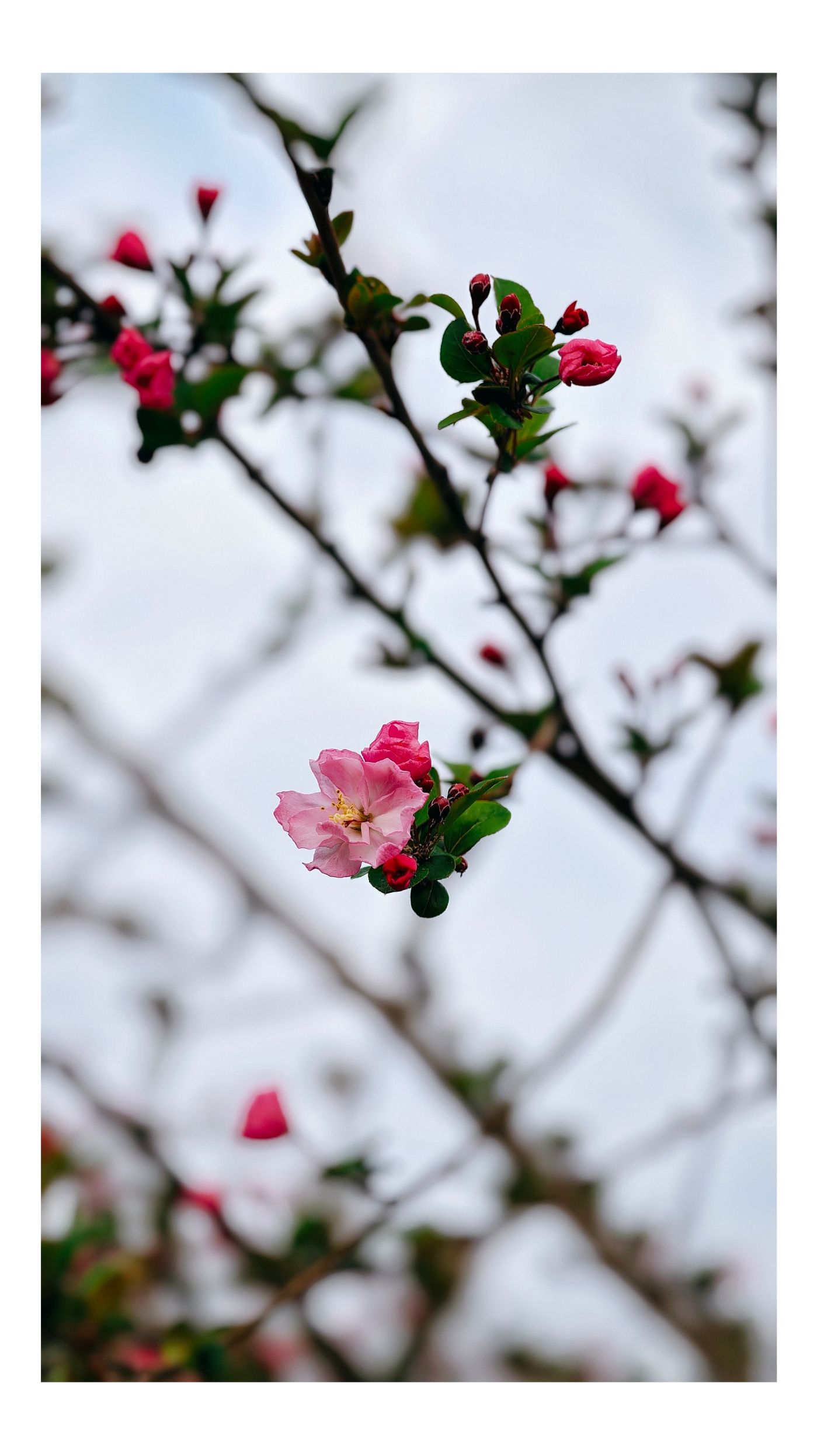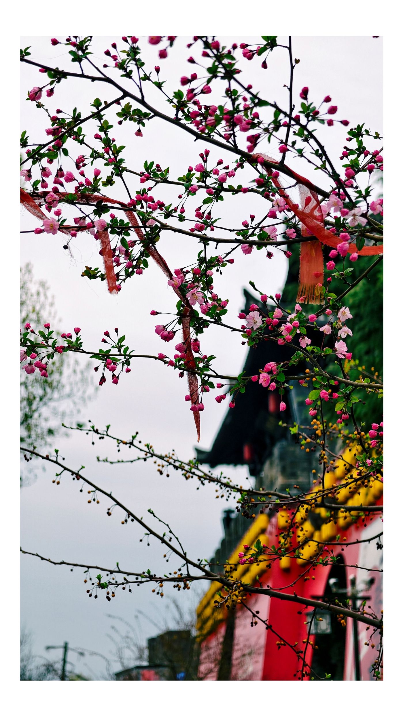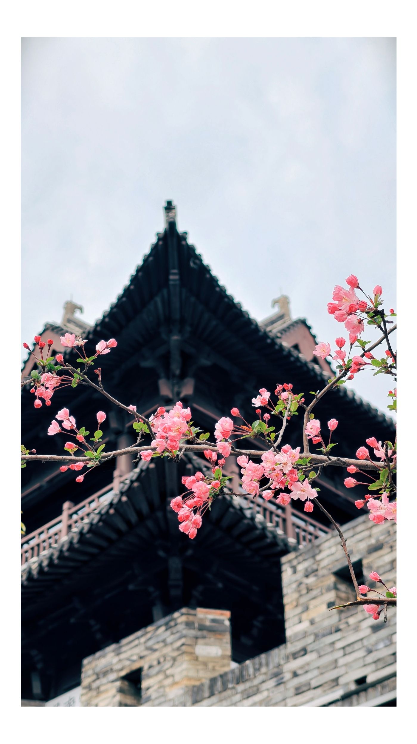 迎恩古城映粉霞,花红正当时