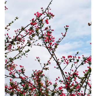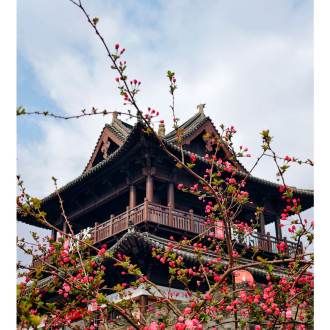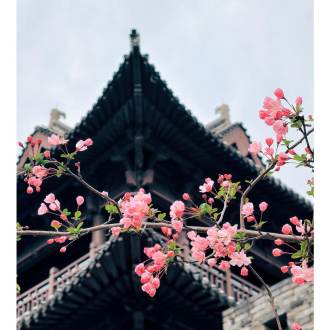 迎恩古城映粉霞,花红正当时